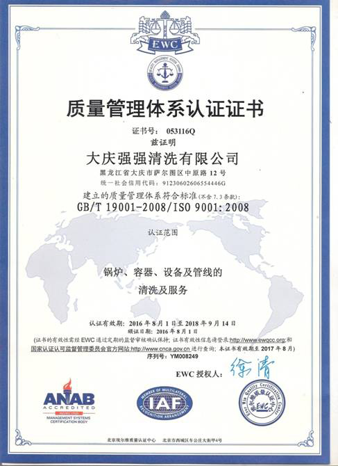 工业设备清洗单位资质评定证书副