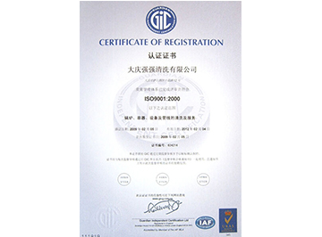大庆强强清洗有限公司认证证书...