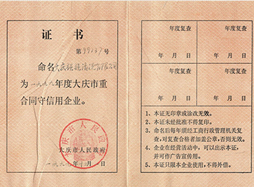 199年度大庆市重合同信用企业证...